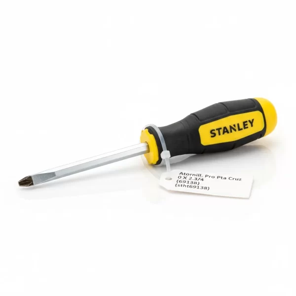 El Atornillador Pro Punta Cruz 0 x 2.3/4 (69138) Stanley (stht69138) es un destornillador profesional ideal para trabajos de atornillado en construcción, mantenimiento y ensamblaje.