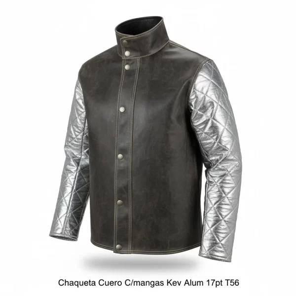 La Chaq Cuero C/mangas Kev Alum 17pt T56 ofrece una protección robusta con su diseño de cuero y mangas reforzadas con Kevlar y aluminio.