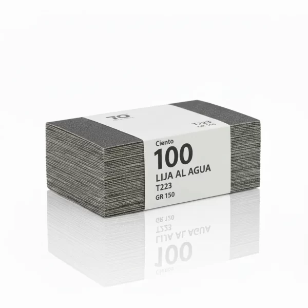 La Ciento Lija Al Agua T223 Gr 150 es la herramienta ideal para un acabado fino y suave, incluso en superficies húmedas.