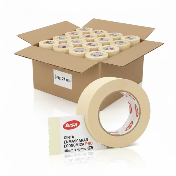 La Cinta Enmascarar Económica 36mmx40mts (24un) Pro Tesa es la solución ideal para trabajos de pintura y protección, ofreciendo calidad y rendimiento a un excelente precio.