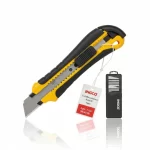 El Cuchillo Cartonero Metálico Retráctil Ingco (HUK615) es la herramienta esencial para cortes precisos, gracias a su cuerpo de aleación de zinc y hoja SK5 auto-bloqueable.