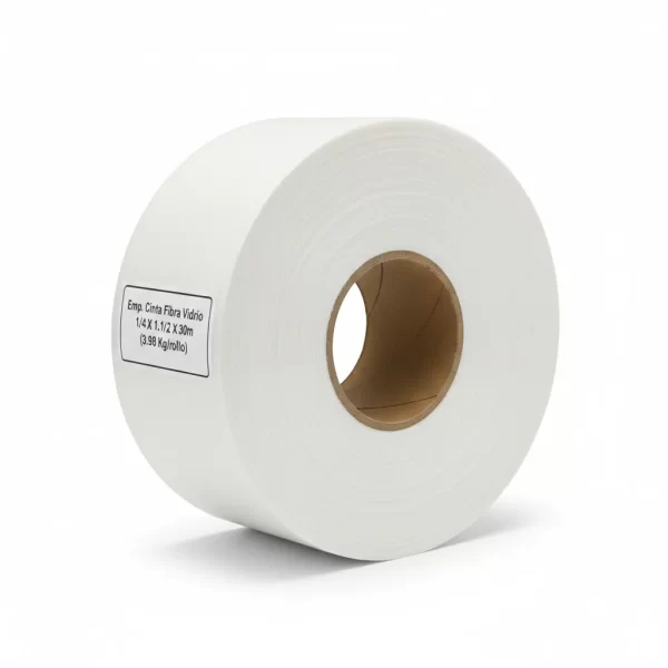 La “Emp Cinta Fibra Vidrio 1/4 X 1.1/2 X 30m (3.98 Kg/rollo)” es una cinta de fibra de vidrio robusta, ideal para aplicaciones que requieren alta resistencia y rendimiento, con un rollo que pesa aproximadamente 3.98 kg y tiene una longitud de 30 metros.