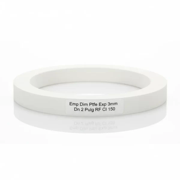 El empaque expandido de PTFE, con dimensiones de 3mm de espesor y diseñado para una tubería nominal de 2 pulgadas (DN 2 Pulg) con brida Clase 150 (Rf Cl 150), garantiza un sellado resistente y duradero gracias a su material de politetrafluoroetileno expandido.