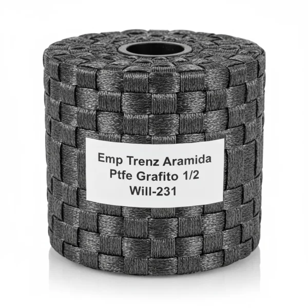 La empaquetadura trenzada “Emp Trenz Aramida Ptfe Grafito 1/2 Will-231” combina la resistencia de la aramida con las propiedades de sellado y baja fricción del PTFE y el grafito, ideal para aplicaciones industriales exigentes.
