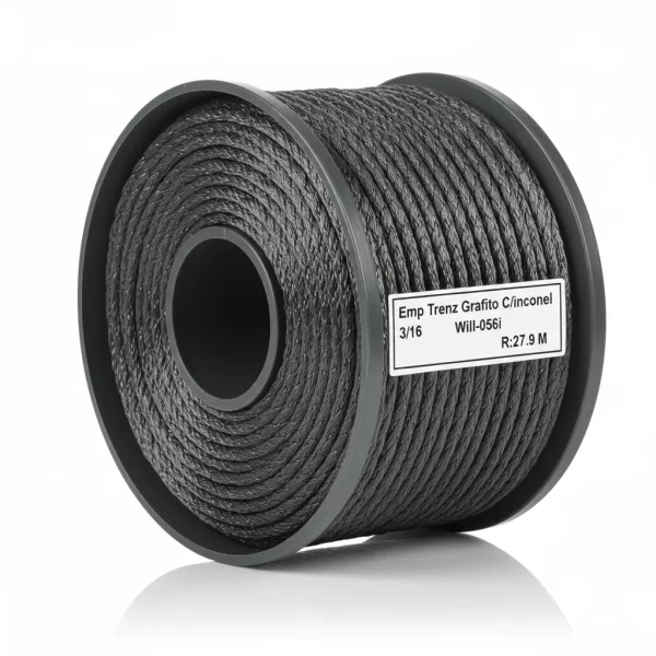 La Emp Trenz Grafito C/inconel 3/16 Will-056i R:27.9 M es una empaquetadura trenzada de grafito con Inconel, ideal para sellados de alta resistencia y durabilidad.