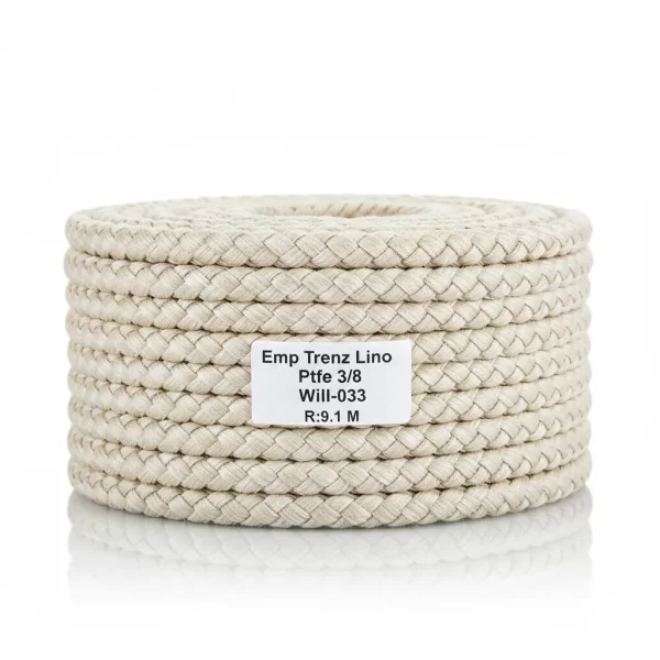 El empaque trenzado de lino y PTFE de 3/8, con referencia Will-033 R:9.1 M, es una solución de sellado robusta y fiable para diversas aplicaciones industriales.