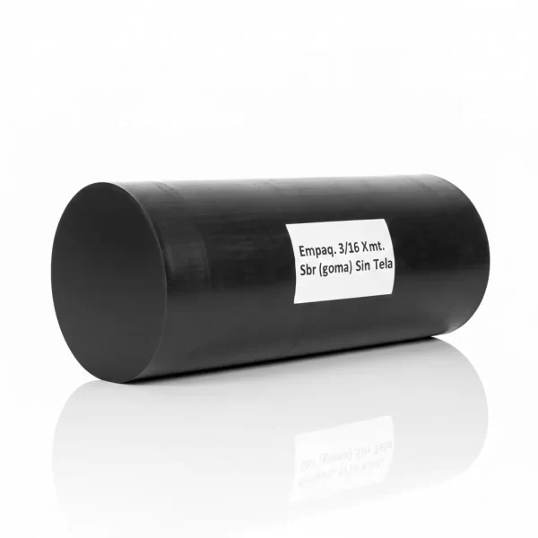La Empaquetadura SBR (goma) Sin Tela, de 3/16 X 1 metro, es ideal para sellado industrial y aplicaciones de mediana presión que requieren resistencia mecánica, gracias a su composición de caucho sintético sin refuerzo de tela.