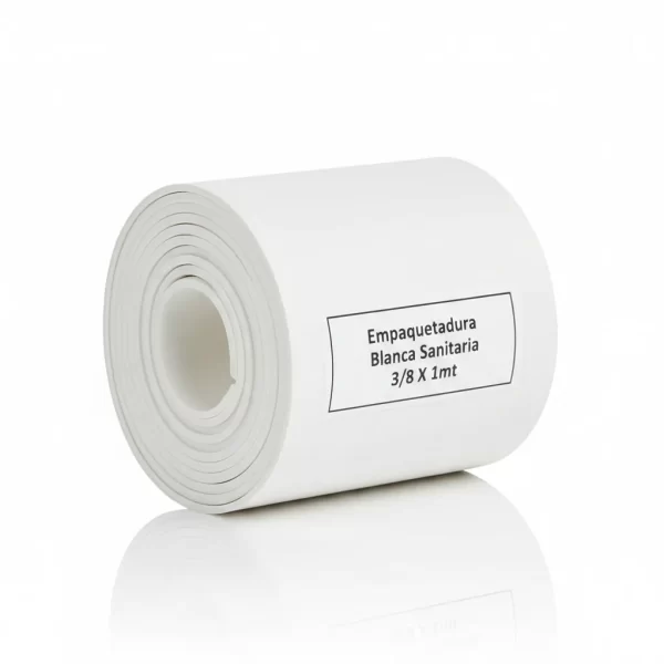 La Empaquetadura Blanca Sanitaria 3/8 X 1mt es la solución ideal para asegurar un sellado higiénico y confiable en tus instalaciones.