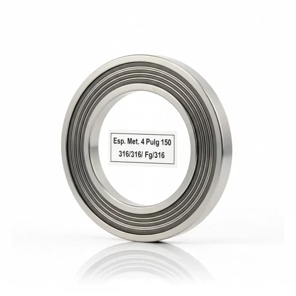 La empaquetadura Esp. Met. 4 Pulg 150 316/316/ Fg/316 es una junta de sellado tipo espiral de 4 pulgadas y clase 150, fabricada con acero inoxidable 316 y relleno de grafito flexible (FG), ideal para aplicaciones industriales de alta exigencia.