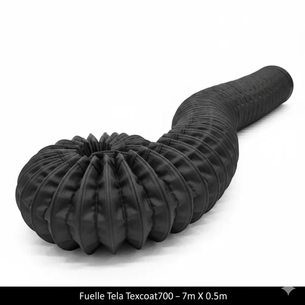 El fuelle de tela Texcoat700, con sus dimensiones de 7m X 0.5m, ofrece una solución resistente y flexible para diversas aplicaciones industriales.