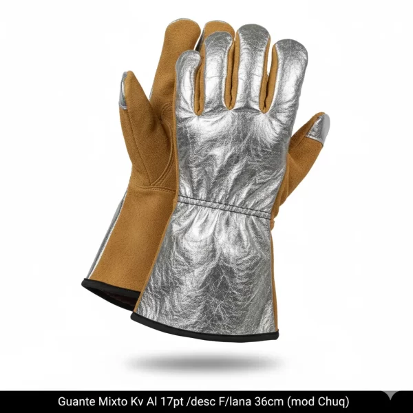 Protección superior y comodidad inigualable con el Guante Mixto Kv Al 17pt. Su diseño de 36cm con forro de lana (mod Chuq) garantiza resistencia y calidez en cada uso.