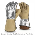 Este guante Zetex, de 36 cm, ofrece una protección superior. Su diseño combina aluminio y cuero reforzado en la palma y los dedos, ideal para trabajos que requieren resistencia y seguridad.