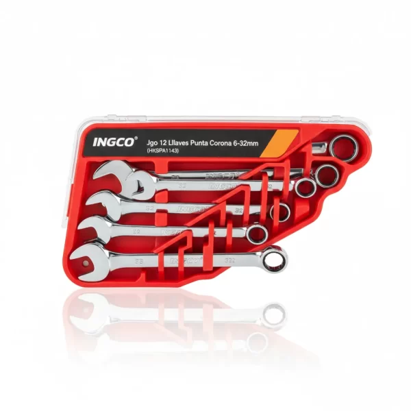 El Juego de 12 Llaves Punta Corona Ingco HKSPA1143 es esencial para cualquier caja de herramientas, cubriendo medidas de 6 a 32 mm y destacando por su durabilidad en cromo-vanadio.