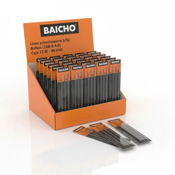 La Lima para motosierra 5/32 Bahco (modelo 168-8-4.0) es una herramienta esencial y de alta calidad para afilar las cadenas. Este paquete incluye 36 unidades, perfectas para mantener el dentado de su motosierra siempre a punto.