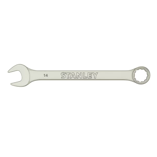 La Llave Punta Corona 12 Ptas 14 Mm. Stanley (86859/80224-840) es una herramienta de alta calidad, a menudo referida como llave mixta o cola corona. Con un extremo de corona de 12 puntas que utiliza el sistema MaxiDrive™ para mayor torque y evitar el redondeo, y un extremo abierto orientado a 15º para ajustes rápidos, esta llave de 14 mm supera las normas industriales.