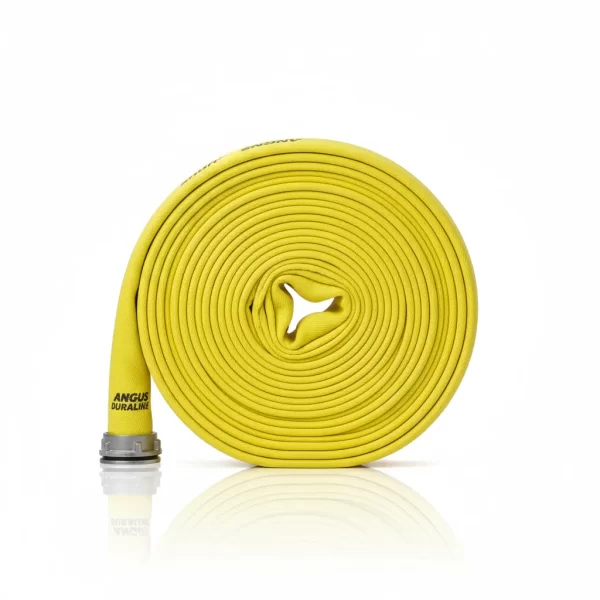 La Manguera Angus Duraline 2 1/2 Amarilla es reconocida por su rendimiento excepcional y durabilidad, siendo una manguera de bomberos de primera calidad utilizada en servicios municipales e industriales.