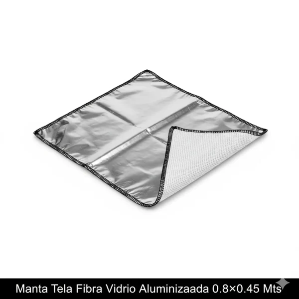 La Manta Tela Fib Vid Alum 0.8×0.45 Mts es ideal para proyectos que requieren resistencia y aislamiento, gracias a su composición de fibra de vidrio y aluminio.