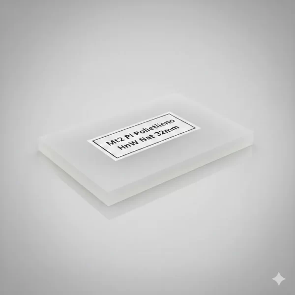 La placa de Polietileno HMW (Alto Peso Molecular) Natural de 32 mm ofrece una excelente resistencia al desgaste y químicos, ideal para aplicaciones industriales exigentes.