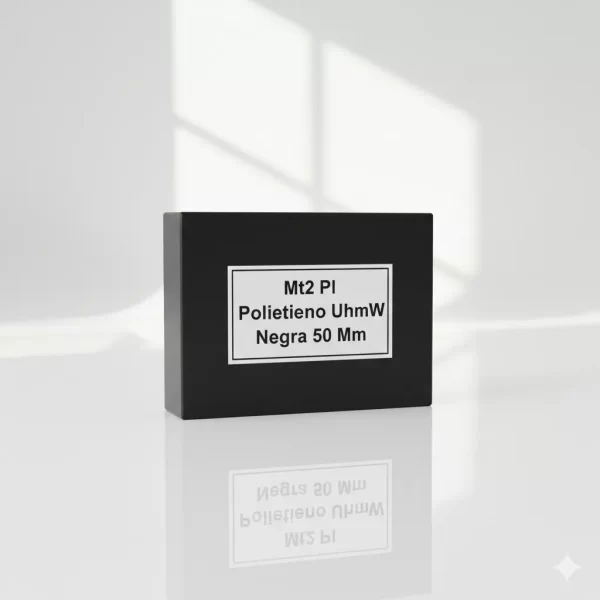 La plancha de Polietileno UHMW (Ultra Alto Peso Molecular) negra de 50 mm, identificada como Mt2, es un plástico de ingeniería de alta resistencia, ideal para aplicaciones que requieren baja fricción, resistencia al desgaste y a químicos.