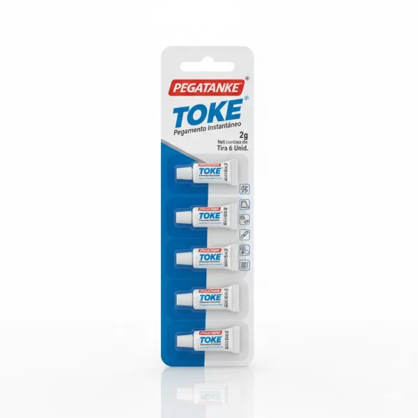 El Pegatanke Toke Ristra de 2g, un pegamento instantáneo que viene en una tira de 6 unidades, es ideal para esas reparaciones rápidas.