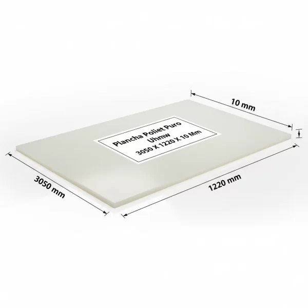 La Plancha Poliet Puro Uhmw 3050 X 1220 X 10 Mm es la solución ideal para aplicaciones que requieren alta resistencia al desgaste y bajo coeficiente de fricción.