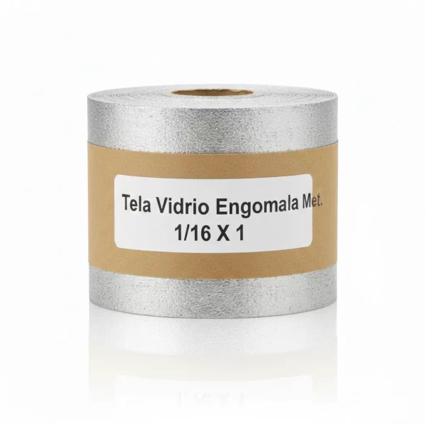 La Tela Vidrio Engomada Met. 1/16 X 1 es un material resistente, ideal para aplicaciones que requieren aislamiento y soporte, con un espesor de 1/16 de pulgada.