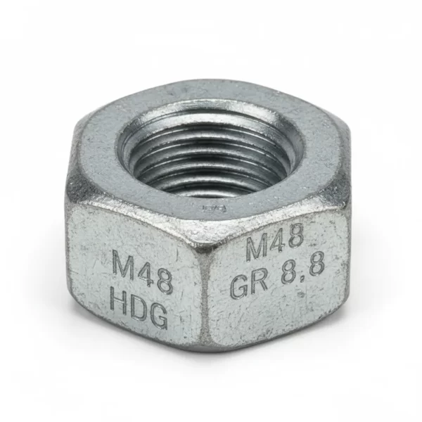 La Tuerca M48 / M48 Hex Nut Gr 8.8 (hdg) es un componente esencial para fijaciones robustas que requieren alta resistencia y protección contra la corrosión. Su diseño hexagonal y grado 8.8 aseguran un rendimiento confiable en condiciones exigentes.