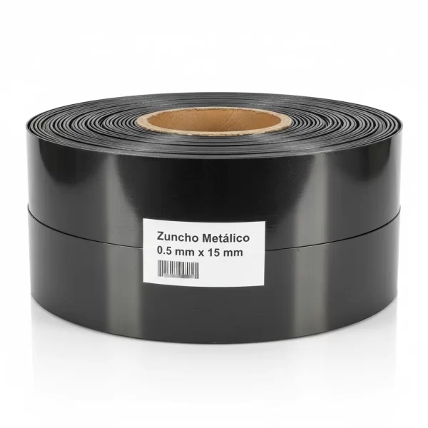El Zuncho Metálico de 0.5mm x 15mm es ideal para asegurar cargas y embalajes con alta resistencia.